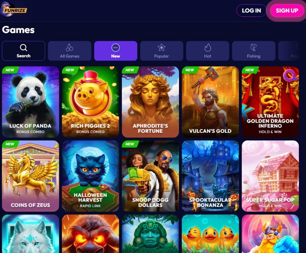 Funrize Casino’s game library features a mix of slots, table games, and instant-win options.